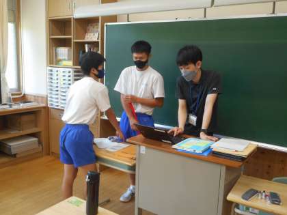 運動会に向けて、3年生の団のリーダーが、集まって打ち合わせをしています。今年はどんなパフォーマンスになるのでしょうか。今から楽しみです。