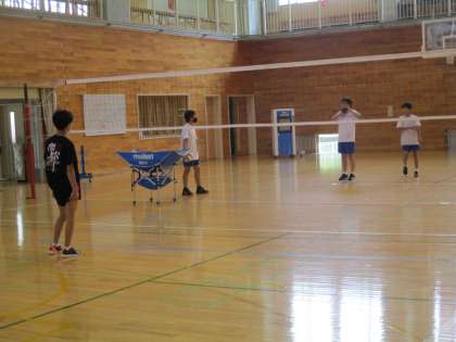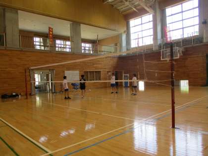 生徒たちの活気あふれる声が、ボールを打つ音とともに廊下まで響いています。
