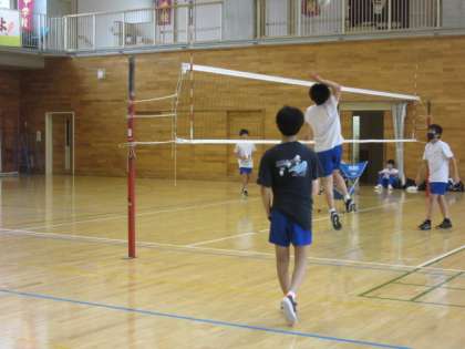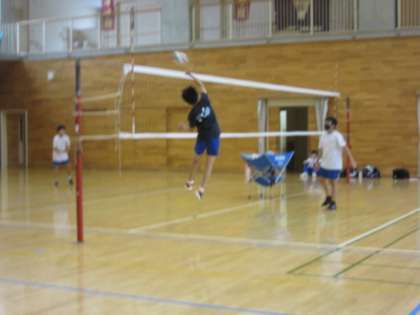 バレーボール部では、鋭い角度でスパイクを決めていました。