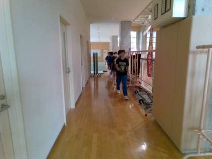 陸上競技部は屋内で休憩し、再び練習を行うために移動していました。