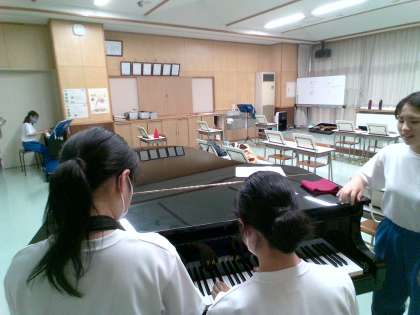 吹奏楽部は休憩中でした。