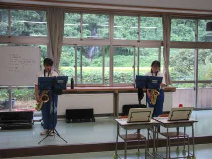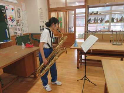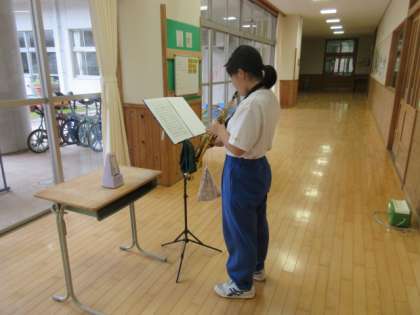 吹奏楽部の活動の様子です。一人一人が、演奏曲の自分の課題となっている箇所を一生懸命に練習していました。