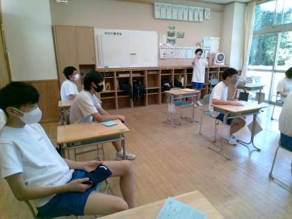 1・3年生は視力測定、2年生は明日の予定を確認していました。