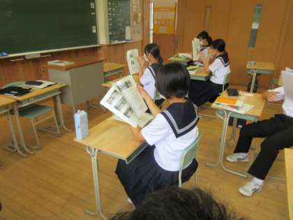4限の授業では、これまでの学習内容を復習したり、互いの自由研究レポートを読んで感想を述べ合ったりしていました。