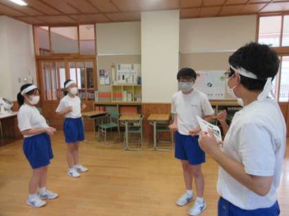 国語科教室と社会科教室に分かれて、動きの確認をしました。