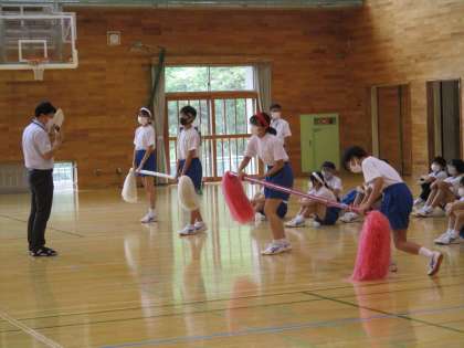5限は、運動会の練習として、各競技の並びや説明について、各競技担当の先生から説明を聞きました。その後、実際に走る順番に並んだり、道具を使ったりして、確認をしました。