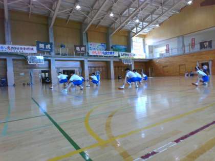 白虎団は、体育館で団活動を行いました。応援の立ち位置や動きの確認など、本番を想定し練習していました。