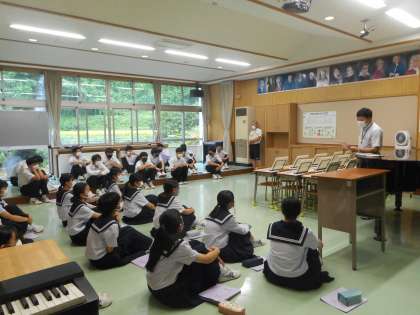 3時間目は、全学年合同の音楽の授業です。2学期は、学習発表として3会場で合唱を発表することになっています。