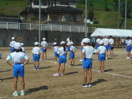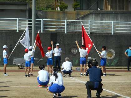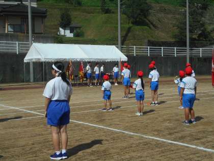 2時間目の小学校と中学校の中合同練習では、秋晴れのもと、グランドで開会式と閉会式の練習を重点的に行いました。