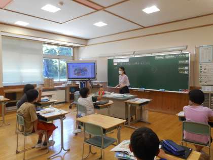 火曜日は、中学校英語教諭による小学校での外国語の授業がある曜日です。連日の運動会に向けた練習が続く中、子供たちは、学習課題を達成しようと、元気よく発言していました。