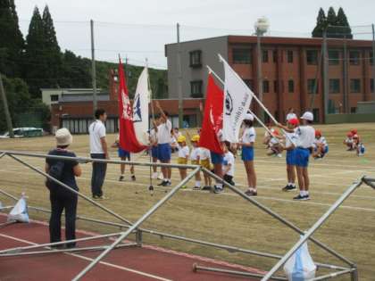 運動会当日に向け、開・閉会式、団体競技の動きを確認しました。