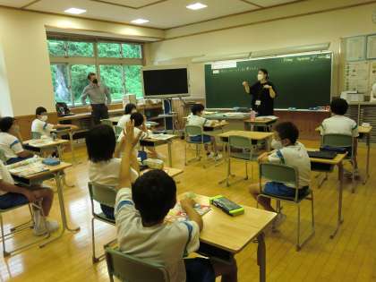 中学校英語科教諭が小学校で外国語の授業をしています。
