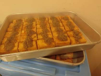 今日の「揚げ出し豆腐のごまだれかけ」は、ひそかな人気メニューです。小学校では好評でした。中学校では、完食できたでしょうか。