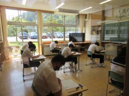3年生は、本日一日かけて確認テストをしました。各教科のテストに集中して取り組んでいました。