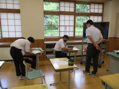 昼休みに、「山田中学力向上アカデミー」を行いました。自分で持ってきた課題を取り組んだり、生徒同士で教え合ったりしていました。