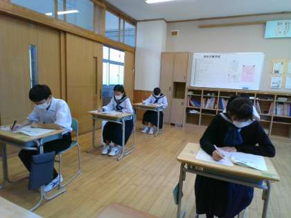 今日から2学期の中間評価が始まります。1年生にとっては、2回目となる定期評価です。先生から言われた「空欄をつくらない」ができるよう、評価前の確認にも粘り強く取り組んでいました。