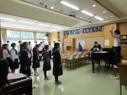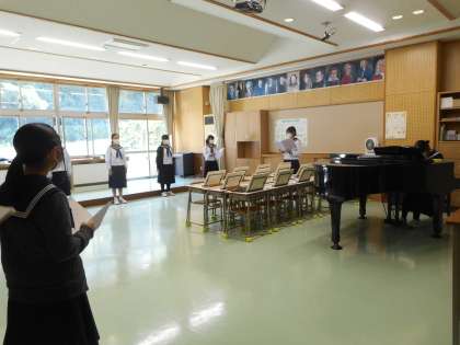 4限は、小中学校合同学習発表会や富山市中学校文化祭、山田地域文化祭に向けての合唱練習です。本日、合唱曲「地球星歌」に加え、「ふるさと」を披露する機会があることが分かり練習しました。来週からは、放課後練習を始めます。全学年で力を合わせ、響きのある歌声を目指します。