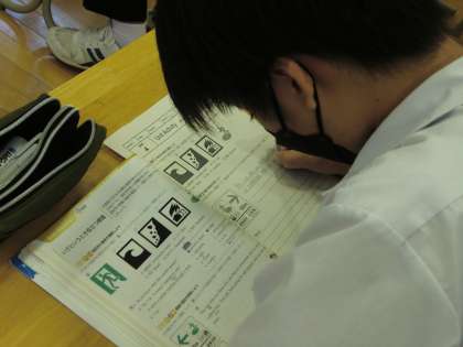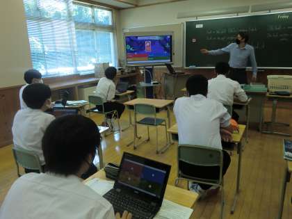 ALTとの授業でした。ICTを活用した言語活動を楽しんだ後、プリントで既習事項を確認しました。