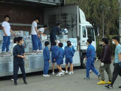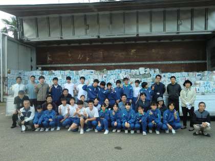 早朝から生徒が集まり、力を合わせて、地域で回収された資源をトラックに積み込みました。