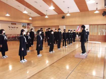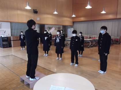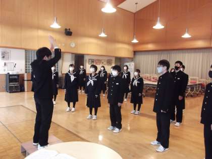 小学校・中学校合同学習発表会で「地球星歌〜笑顔のために〜」を全員で合唱するために、本番直前まで練習し、気持ちを高めました。
