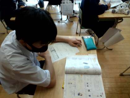 これからの日常生活に必要な内容となる、繊維の種類と手入れ方法について学んでいます。