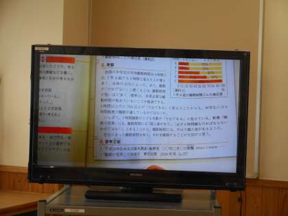 本日の学習課題は、「調査の結果を根拠として引用し、説得力のあるレポートを書こう」です。自分の考えに説得力をもたせるために、課題に関連する資料(表、グラフ)を端末や文献等から引用します。