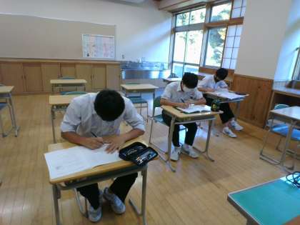昼休みの学力向上アカデミーでは、今日あった中教研学力調査の問題を解き直したり、2週間後の期末評価に向けてワークを進めたりしている生徒の様子が見られました。