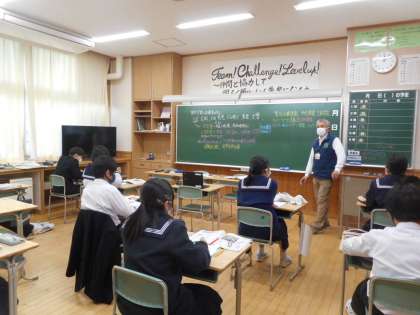 本日の授業は、「自然災害による障害の防止」について学びます。自然災害が発生したときにどのように行動したらよいかを考えます。校内に掲示してある山田地域のハザードマップも紹介されました。