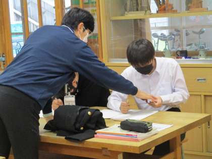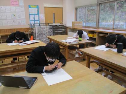 卒業記念品となる八角時計の制作に取り組んでいます。刃先を使って削る際に、質感を意識して丁寧に削っています。