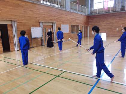 1年生は、体育の授業で、剣道を学習しました。基本の構え方や、打ち方等、ペアを変えながら、練習していました。
