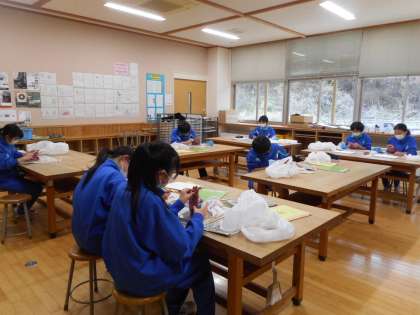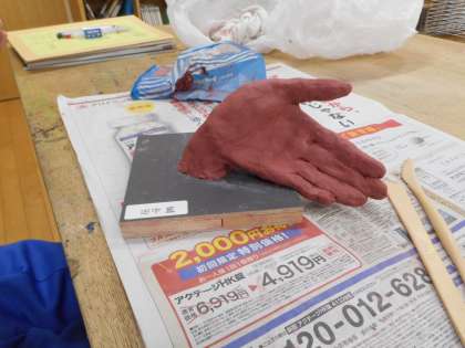 本日の学習課題は、「部分と部分、部分と全体とのつながりに気を付けて表現しよう」です。針金で造った心棒に何度も粘土を重ね、肉付けしていきます。どの生徒も自分の作品に自信をもって制作していました。
