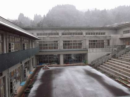 今季これまでで一番強い寒気の到来により、運動体験広場にはうっすら雪が積もっています。