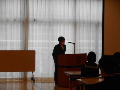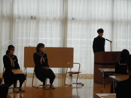 式前に生徒代表の意見発表がありました。各学年の代表者が、2学期で頑張ったことを発表しました。どの学年の代表も、毎日の学習、生徒会活動、運動会に懸命に取り組んだことが、うかがえる内容でした。