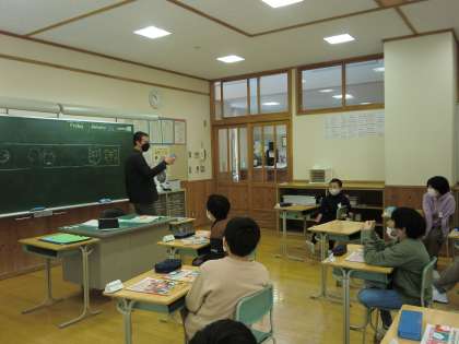 本校英語科教諭が小学校でALTと共に授業をしています。ある学年では、干支に関わる動物を英語で学習しました。
