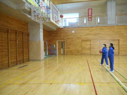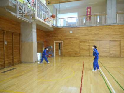 本日の授業は、「バスケットポール」です。ゲーム形式の練習の前に、ひたすらシュート練習を繰り返します。