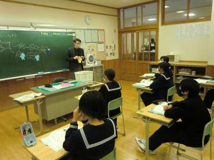 2年生は、比較級・最上級を学習しています。今日は、ICTを用いて、ALTと一緒に楽しく表現の復習をしました。