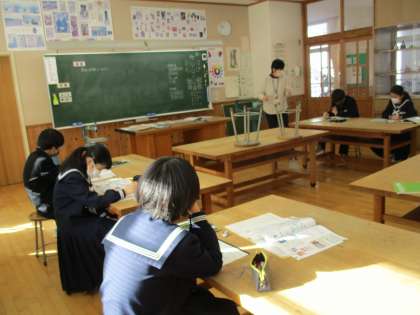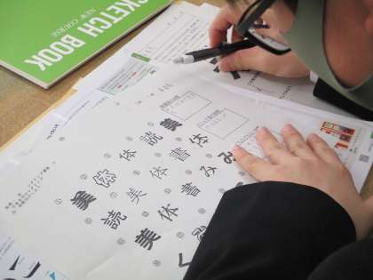 美術の授業では、書体の特徴をつかむため、様々な書体の仲間分けに挑戦しました。「明朝体」「ゴシック体」「その他」に分けるとき、ぱっと見て分かるものから、よく見ないと気付かない書体など、文字の太さや構成に注目して行いました。