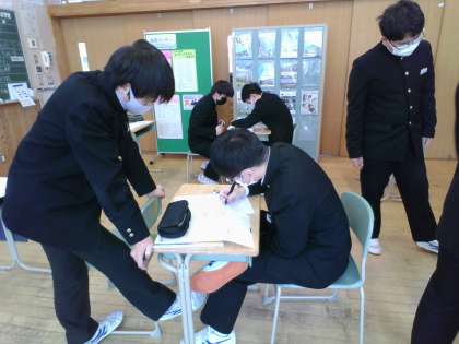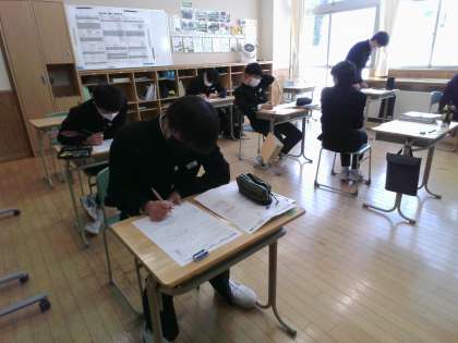 3年生は、数学の授業で入試対策の確認プリントに取り組みました。間違えた問題や、分からなかった問題を聞き合いながら理解を深めました。