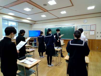 現在形、過去形、過去分詞の動詞の変化を音読しています。