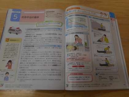 本日の学習は、「応急手当」です。いざという時に、慌てず適切な応急手当が行えるよう、手順を学習します。反応がない場合に活用するAEDの校内設置場所も確認しました。
