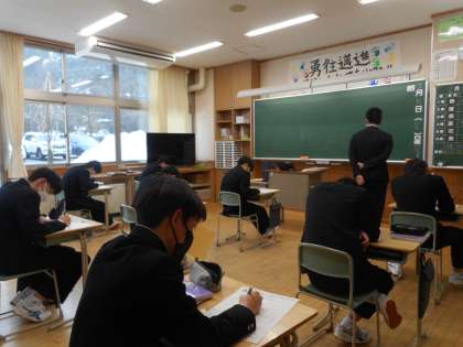 本日の学習は、総合問題(1・2年内容)に取り組みました。途中で解説用紙が配られましたが、時間までに全問を解こうとする、粘り強い生徒の姿も見られました。