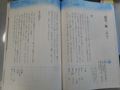 本日の学習課題は「中心が明確になるように、構成や描写を考えて書く」です。筆者の思いや考えが、いろいろな表現で書かれている随筆に取り組みます。