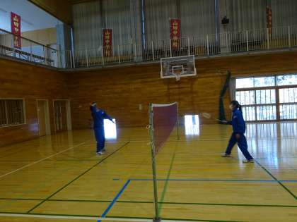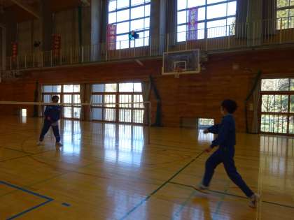 1年生は体育の授業でバドミントンに取り組んでいます。様々なペアになり、ラリーを続けています。