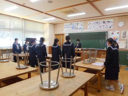 全校生徒による卒業証書授与式に向けた合唱練習です。男女パートに分かれ、パートリーダーを中心に練習を重ねます。練習を重ねる度にでてくる改善点を全員で確認しながら、進めていきます。