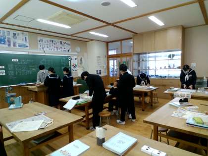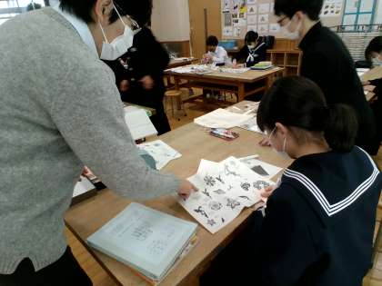 作業が終わった生徒は「もんきり」に取り組んでいます。