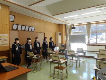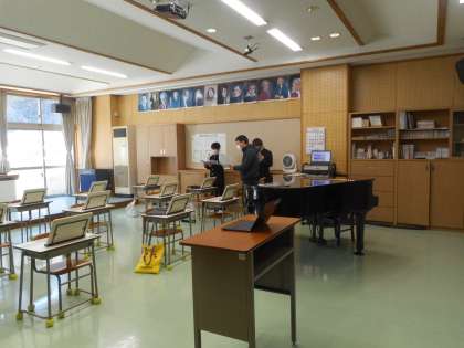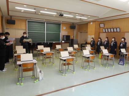 本日の授業は、卒業証書授与式に向けての合唱練習です。男女パートに分かれ、それぞれ音階を確認し練習を重ねます。