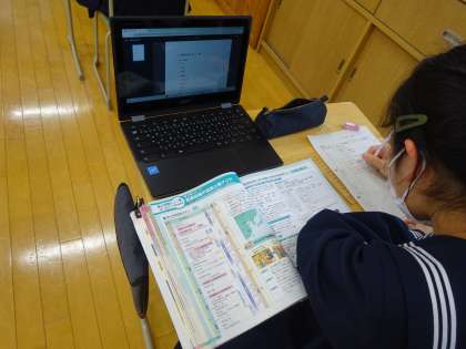 1年生は、社会の授業で、1年生で学習した内容を年表にする活動を行いました。教科書を見ながら、どの時代にどのようなことが起こったのかを丁寧にまとめていました。