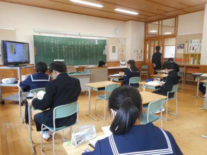 本日の学習課題は、「聞き手の反応に注意しながら話す」です。一年間の国語学習を通して、学んだことの中から観点を選びます。教科書やノートで気付いたことをグループで発表します。