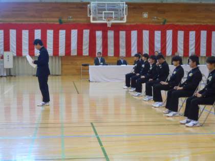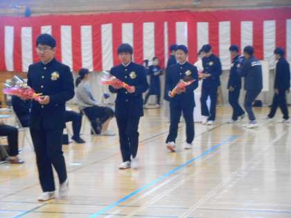 本日、第76回卒業証書授与式を執り行いました。卒業生は、来賓、教職員、在校生、保護者の見守る中で、3年間の思いを胸に、團校長先生から1人ずつ卒業証書を受け取りました。