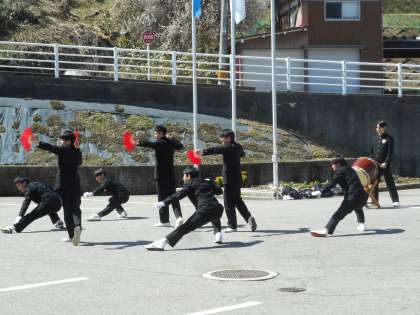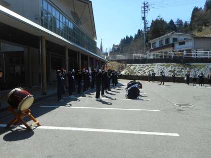 卒業証書授与式後、山田中学校の伝統、卒業生と在校生による「エール交換」がありました。山田中の発展を願うエールが、天高く響きました。